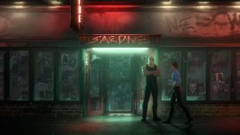 “One beat that I’m kind of glad got cut was a point where Robert actually comes out of the bathroom after he’s fighting, and there was a choice that we ended up excising was you saw that Prism was on stage and a shapeshifter had taken the form of one of her holograms, so it was sneaking up on her,” Rebbert said. “Then on the other side of the bar, Punch Up, I can’t remember exactly what was happening with Punch Up, but it was a choice on who to save, right? Who do you go after, and it just ended up being one of those things that felt a little bit more arbitrary, which I think ultimately is why we excised it, but there were fun beats around it where Robert gets in a fight with the Prism hologram if you go on Prism’s side. Then Prism jumps in and saves you, but it’s clear that she just took a guess and accidentally saved you.”