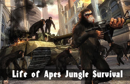 Life of apes: Jungle survival – be in charge of ape revolt, fight against people, hunt and survive in wild jungles, seize the world. In this Android game you are going to challenge human race and win a worthy place in the world for apes. You will start your way in a secret laboratory. Escape from a cage and free other apes. Attack guards, policemen and military officers. Get weapon and apply it in the fights against people. Destroy tanks and other combat machinery. Find a safe shelter in the jungles.
